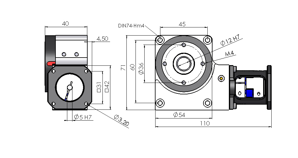 • Un motore passo-passo (Nema17, 42mm) può essere flangiato direttamente sull'albero di uscita.